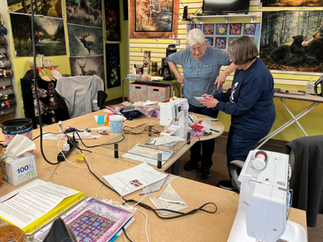 We had a fun time yesterday at the monthly Quilts of Valor sew day learning to foundation paper piece in the tradition of Judy Niemeyer. These ladies were up to challenge and are making the blocks collectively for a lovely QOV quilt.